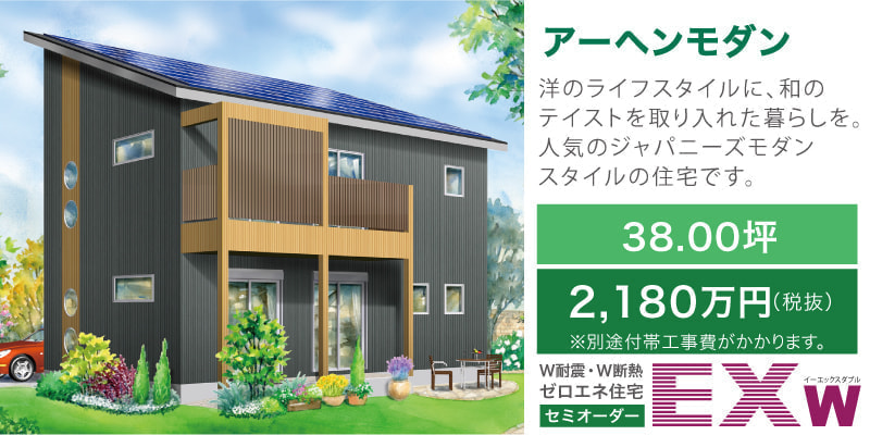EXw イーエックスダブル(W耐震・W断熱・ゼロエネ、セミオーダー住宅)の5タイプのうちの1つ。